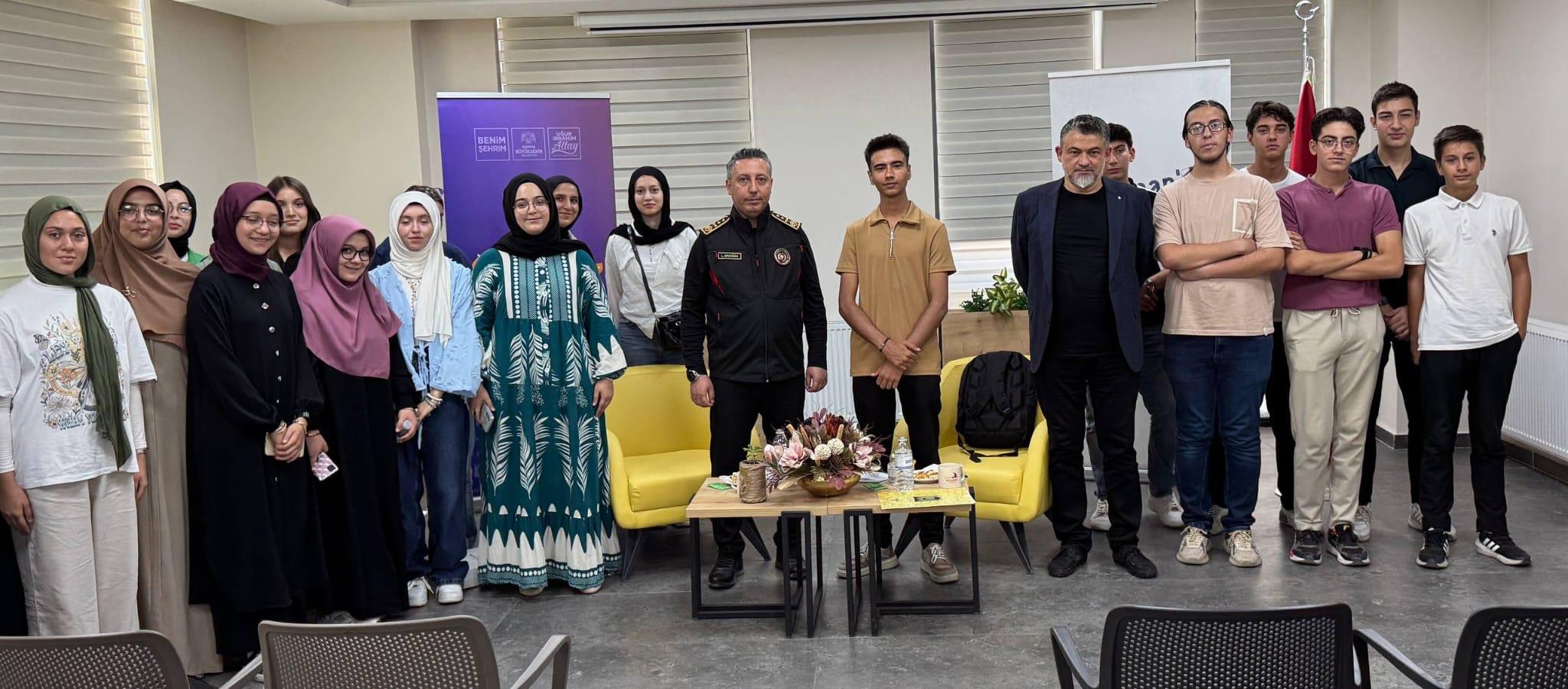 Konya Büyükşehir Belediyesi Lise Medeniyet Akademileri bünyesinde faaliyetlerini sürdüren LİMAN Gönüllüler Platformu, gençleri farklı alanlarda uzman isimlerle bir araya getirmeye devam ediyor. Bu kapsamda düzenlenen son etkinlikte, Konya İtfaiye Dairesi Başkanı Latif Erdoğan, Fuat Sezgin Lise Medeniyet Akademisi’nde öğrencilerle buluştu.