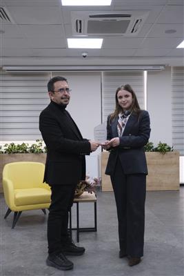 Program, seminerin ana başlıklarının özetlenmesiyle sona ererken, katkılarından ve değerli paylaşımlarından dolayı Dr. Öğr. Üyesi Yusuf Bayar’a teşekkür edilerek plaket takdim edildi.