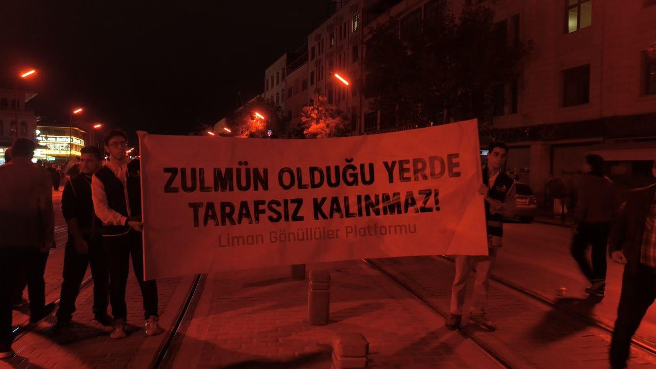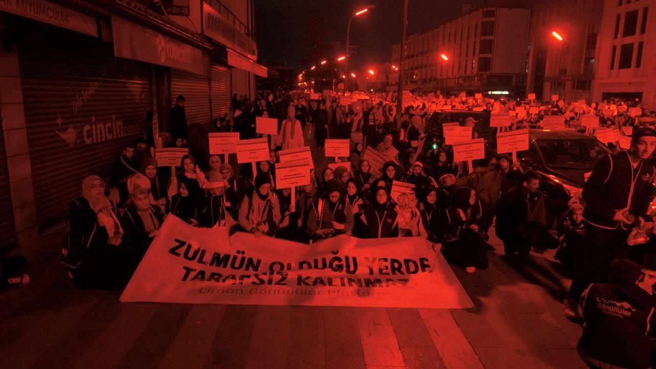 Genç gönüllüler, yaşanan insanlık dramına dikkat çekmek ve vicdanın sesi olmak için sessiz ama anlamlı bir duruş sergiledi.