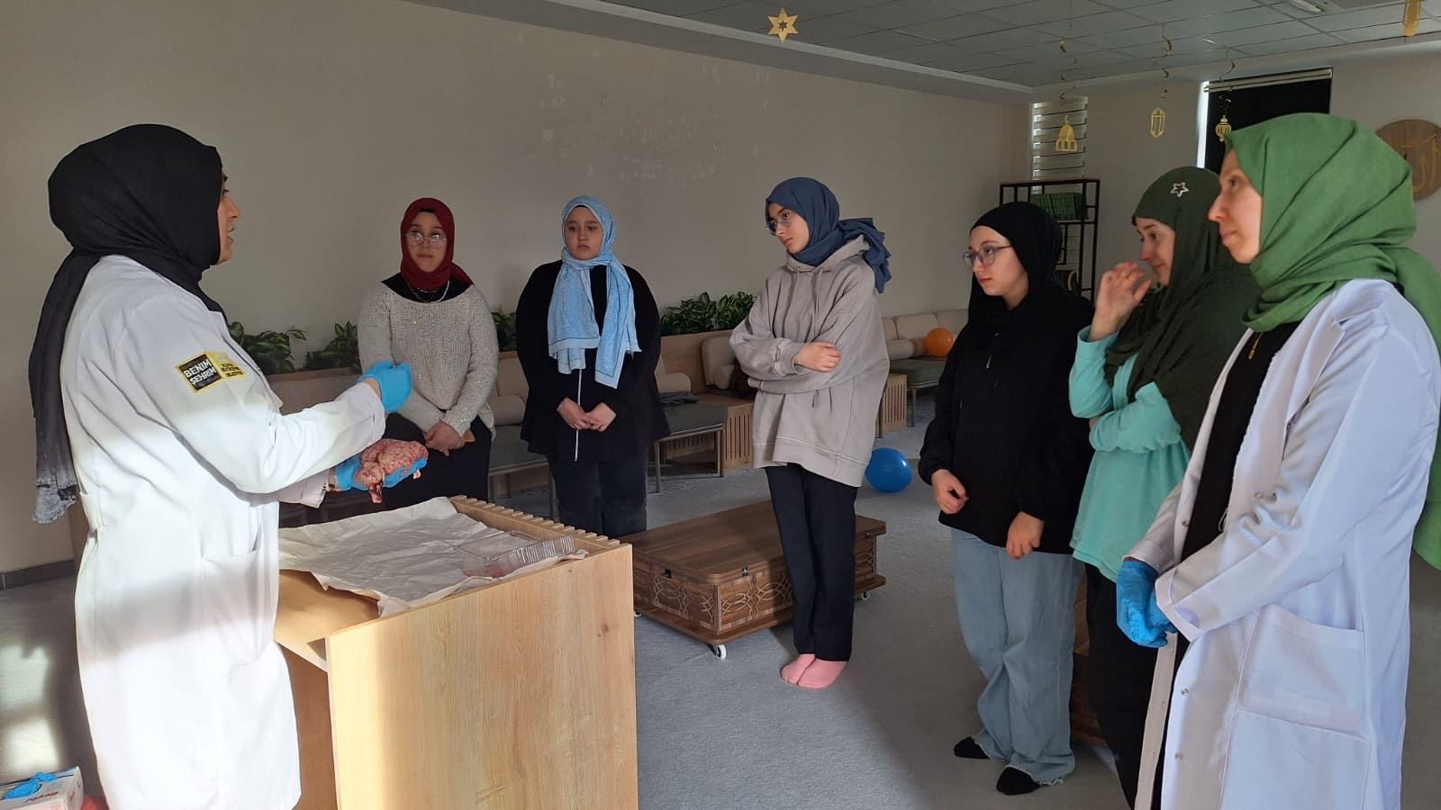 Fuat Sezgin Divanhane Sohbetleri kapsamında düzenlenen etkinlikte, biyoloji öğretmenimiz rehberliğinde öğrencilerle beyin diseksiyonu gerçekleştirilerek insan vücudunun işleyişine dair önemli bilgiler sunuldu. Öğrenciler, beynin temel bölgelerini yakından inceleyerek sinir sistemi ve organın çalışma prensipleri hakkında uygulamalı öğrenme fırsatı buldu. İnsan bedeninin düzeni ve yaratılışındaki inceliklere dikkat çeken bu bilimsel çalışma, öğrencilerin hem farkındalığını artıran hem de merak duygusunu besleyen etkili bir deneyim oldu.