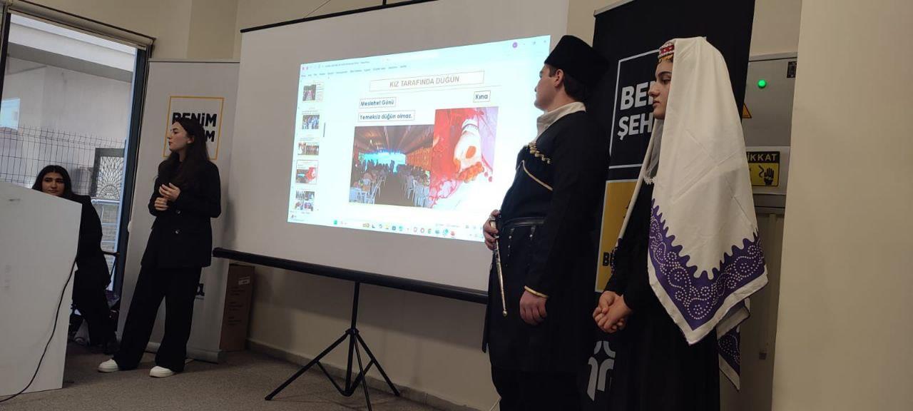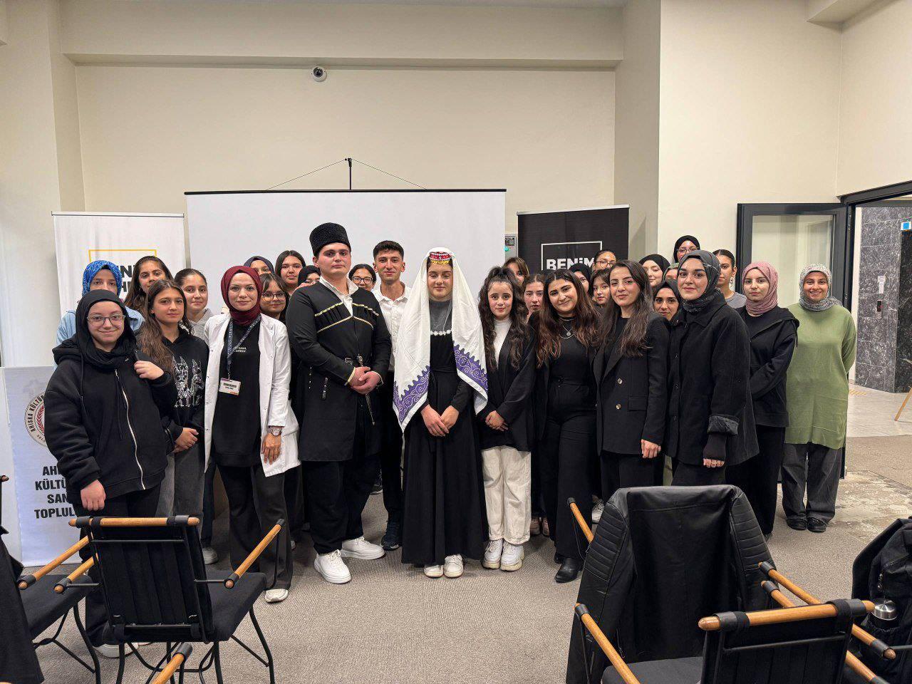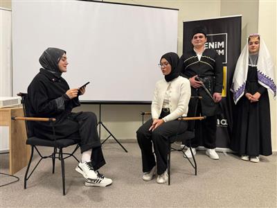 Kültür Atlası Atölyesi kapsamında, öğrencilerin kültürel çeşitliliğe dair farkındalık kazanmasını hedefleyen “Ahıska Türkleri” etkinliği düzenlendi. Programda, Ahıska Türklerinin tarihî yolculuğu, yaşadıkları göç süreçleri ve kültürel mirasları üzerine bilgilendirici sunumlar yapıldı. Tarih Topluluğu öğrencilerinin de katılımıyla etkileşimli bir ortam oluşurken, soru–cevap bölümleri sayesinde öğrenciler konuyu daha yakından tanıma fırsatı buldu. Etkinlik, kültürel kimlikleri anlamaya ve ortak hafızayı canlı tutmaya yönelik değerli bir çalışma olarak gerçekleştirildi.